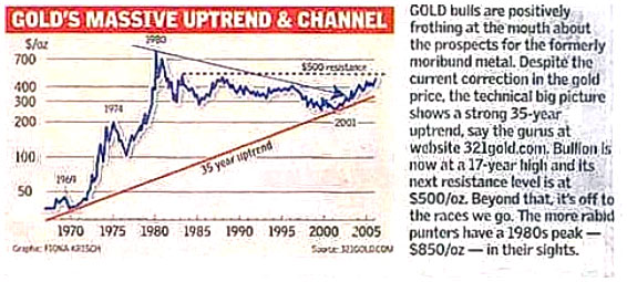 Kudos to the Sunday Times of South Africa, October 16th, 2005 from which I clipped this nugget. This is one of the few unabashedly bullish pieces on gold I have seen in the mainstream media. Those who took note of it when it appeared have assuredly made money.